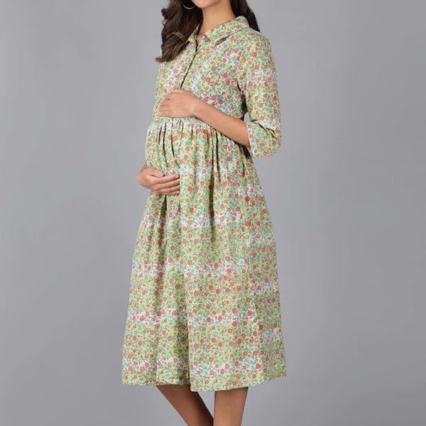 Green Floral Pure Cotton Maternity A-Line Dress