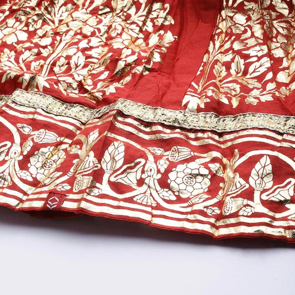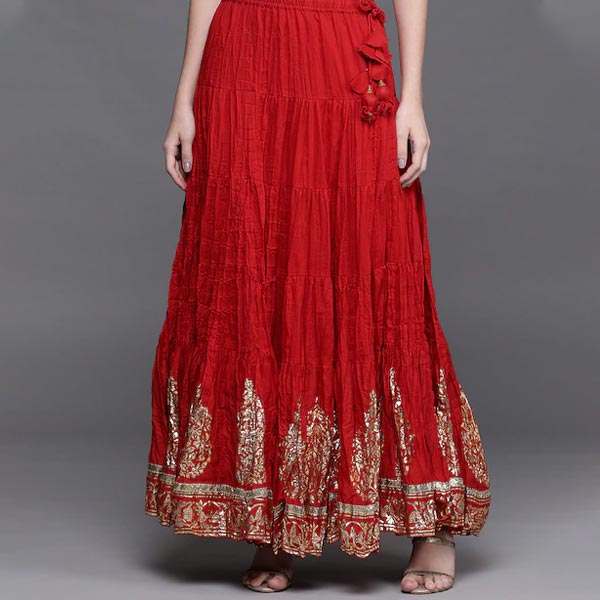 Red Printed Flared Maxi Skirt